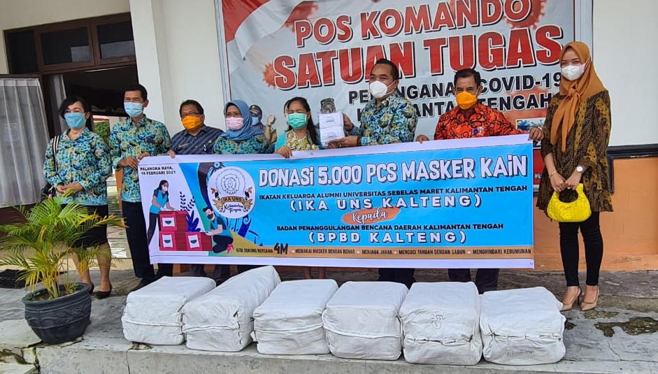 PALANGKA RAYA, Kalteng.co – Ikatan Keluarga Alumni Universitas Sebelas Maret (IKA UNS) menyerahkan donasi berupa 5.000 lembar masker kepada Badan Penanggulangan Bencana Daerah (BPBD) Kalteng.