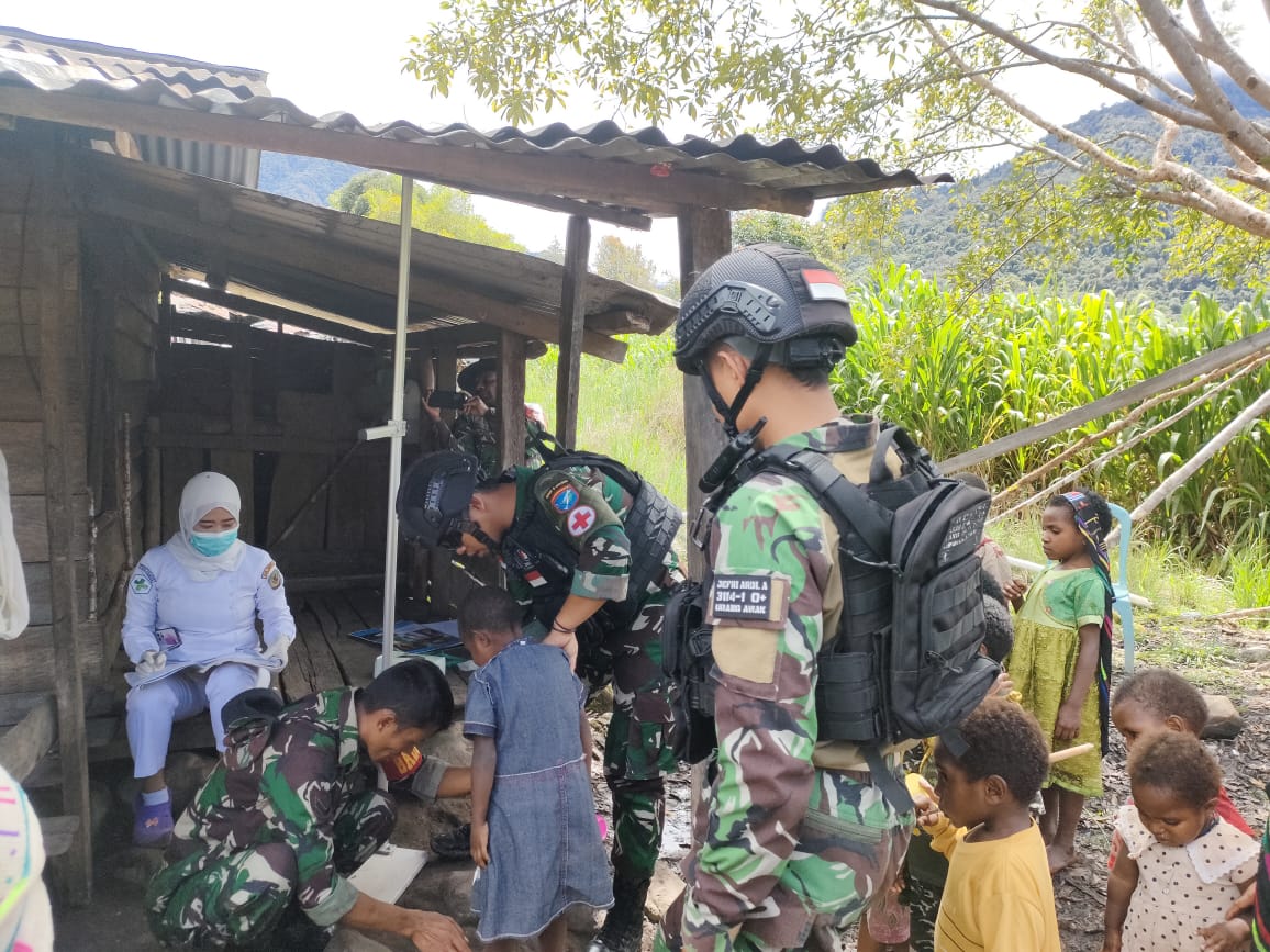 Danpos Jila Satgas Yonif R 631/Atg Letda Inf Damas Supriatna menyampaikan, pelayanan kesehatan yang diberikan secara gratis kepada masyarakat Kp. Momoge tersebut meliputi Pemeriksaan perkembangan Anak-anak, TB, serta imunisasi bayi dan Balita.