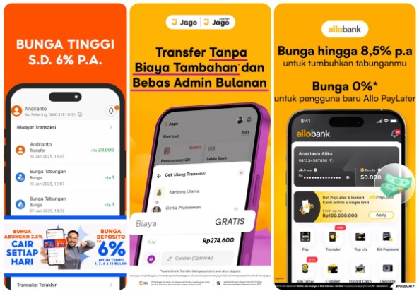 Bagi Anda yang mencari bunga tabungan tinggi, Allo Bank bisa menjadi pilihan. Bank ini menawarkan bunga tabungan mencapai 6,5% per tahun. Allo Bank juga terintegrasi dengan ekosistem ritel seperti Transmart dan layanan F&B lainnya.