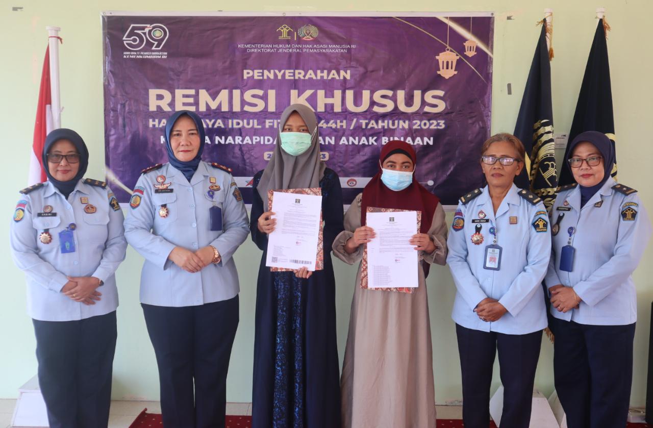 Penyerahan remisi khusus diserahkan langsung oleh Kalapas Perempuan Kelas IIA Palangka Raya Sri Astiana setelah pelaksanaan Shalat Idul Fitri di Lapas setempat, Sabtu (22/04/2023).