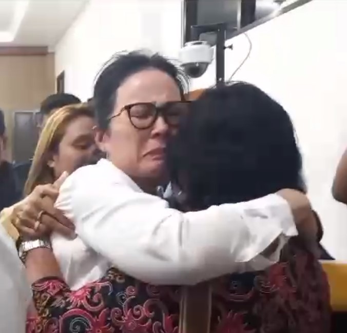 Dalam kesempatan ini masing-masing pihak tidak bisa melepaskan perasaan haru. Sesaat suasana dan adegan berderai air mata menjadi pemandangan yang cukup membuat mewek beberapa pengunjung sidang.