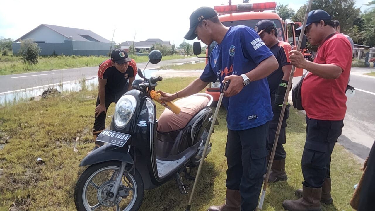 Setelah menerima laporan, regu penyelamat Damkar langsung menuju lokasi. Motor jenis Scoopy yang ditumpangi korban ditemukan terparkir di median rumput, sementara pengendara menunggu di bawah pohon untuk menghindari ancaman ular.