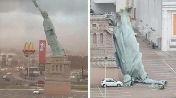 Badai Angin Robohkan Replika Patung Liberty di Brasil, Kepala Hancur di Area Parkir
