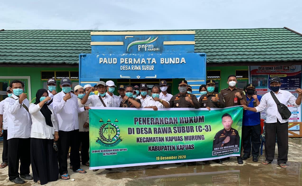 KUALA KAPUAS, kalteng.co- Tim Jaksa dari Cabang Kejaksaan Negeri Kapuas di Palingkau, Sabtu (19/12) memberikan penerangan hukum di wilayah hukumnya di Kecamatan Kapuas Murung Kabupaten Kapuas. Ada dua desa sekaligus yang diberikan penkum tersebut, yaitu Desa Rawa Subur (C-3) dan Desa Palangkau Lama.