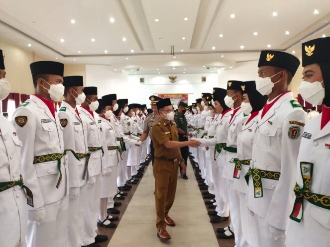 KASONGAN, Kalteng.co – Setelah menjalani Pendidikan dan Pelatihan (Diklat) selama kurang lebih seminggu. Sebanyak 66 orang anggota Paskibraka Kabupaten Katingan tahun 2022, resmi dikukuhkan. Pengukuhan dilakukan langsung oleh Bupati Katingan Sakariyas di gedung Salawah Kasongan, Senin (15/8/2022).