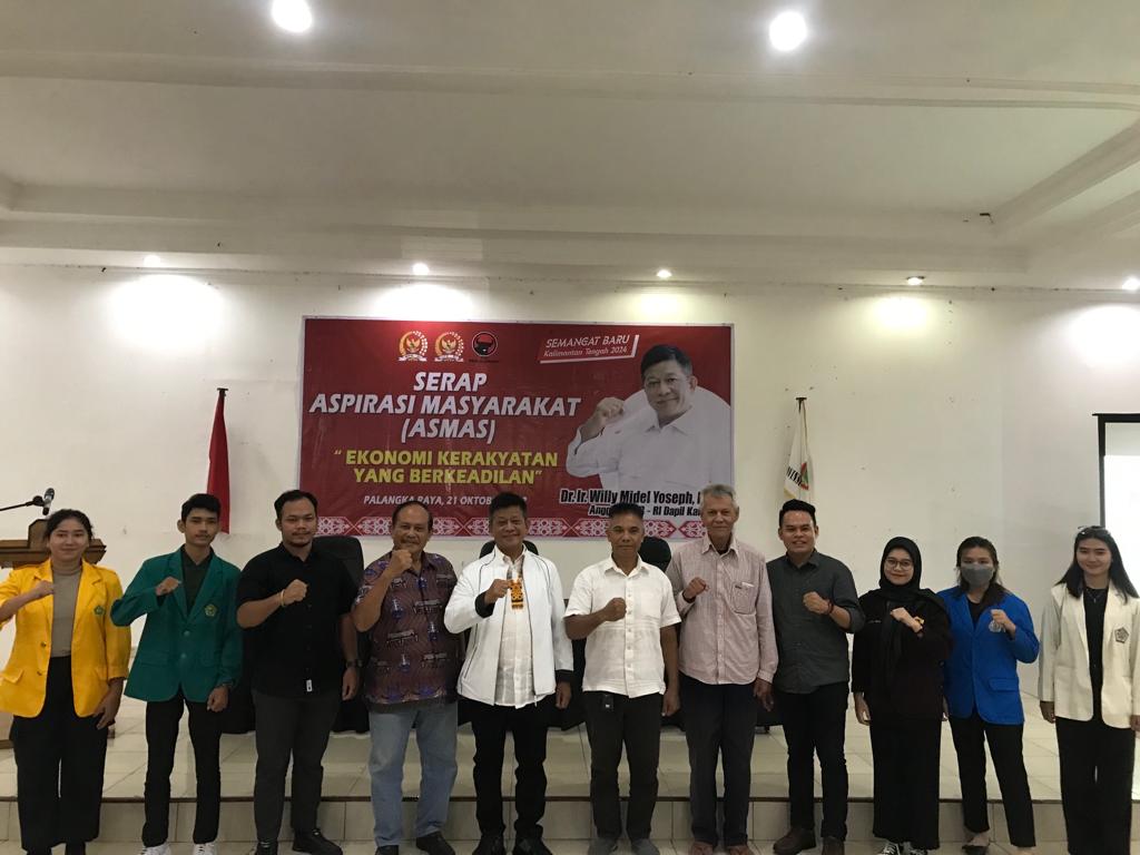 PALANGKA RAYA, Kalteng. Co – Anggota DPR RI dari Fraksi PDIP Willy Midel Yoseph, melaksanakan penyerapan aspirasi masyarakat (Asmas) dengan tema Ekonomi Kerakyatan yang berkeadilan kepada para tokoh masyarakat dan himpunan mahasiswa di Palangka Raya, Sabtu (21/10/2023).