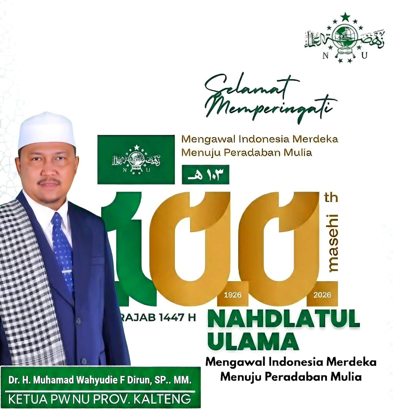 Ketua Pengurus Wilayah Nahdlatul Ulama (PWNU) Provinsi Kalimantan Tengah, Dr. H. Muhamad Wahyudie F Dirun, SP., MM., menyampaikan, satu abad perjalanan NU merupakan bukti nyata konsistensi organisasi dalam mengawal umat, menjaga keutuhan bangsa, serta merawat nilai-nilai Islam Ahlussunnah wal Jama’ah dalam kehidupan bernegara.