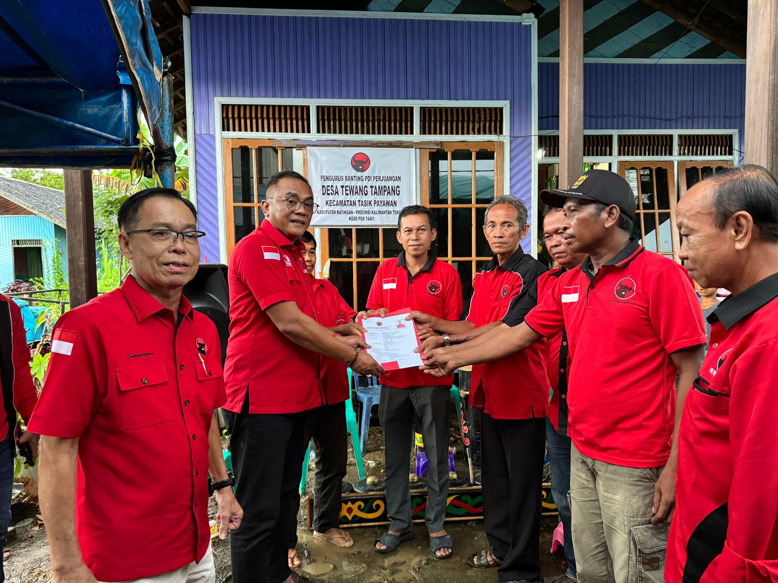 Didampingi kader dan pengurus partai, Sigit mendatangi Sekretariat Pengurus Ranting PDI-P Desa Tewang Tampang, Kecamatan Tasik Payawan.