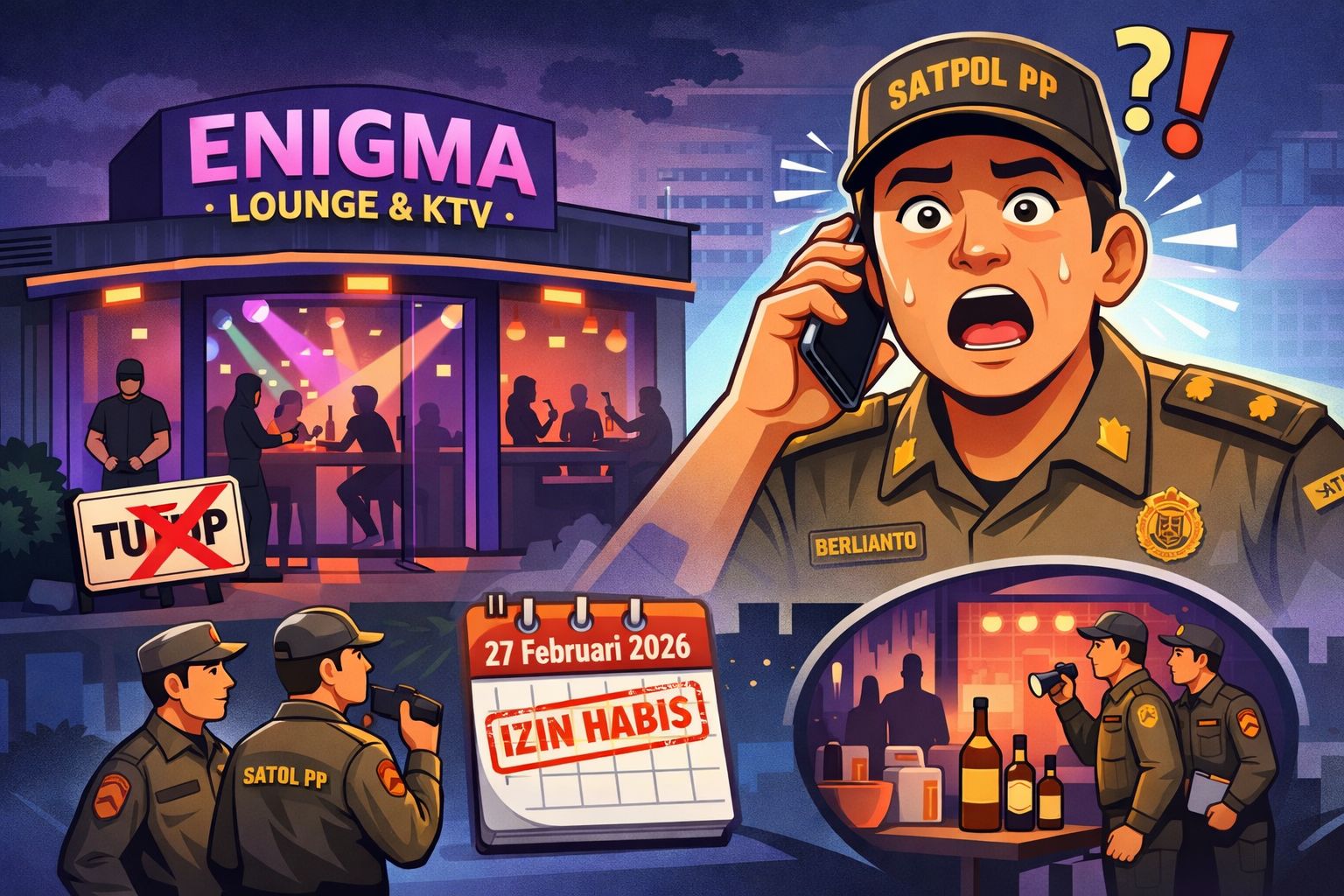 Penindakan terhadap tempat hiburan itu dilakukan saat patroli rutin Satpol PP pada Jumat dini hari (13/3/2026) sekitar pukul 01.30 WIB. Saat itu, petugas menemukan aktivitas operasional masih berlangsung dan melayani pengunjung.
