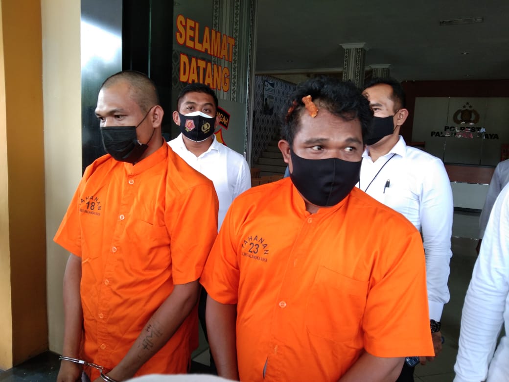 PALANGKA RAYA, KALTENG.CO – Polresta Palangka Raya melaksanakan siaran rilis pecahnya perkelahian di Nav Karaoke di halaman Mapolres setempat, Senin (15/2/2021) siang. Tampang dua pelakunya diperlihatkan dihadapan awak media.