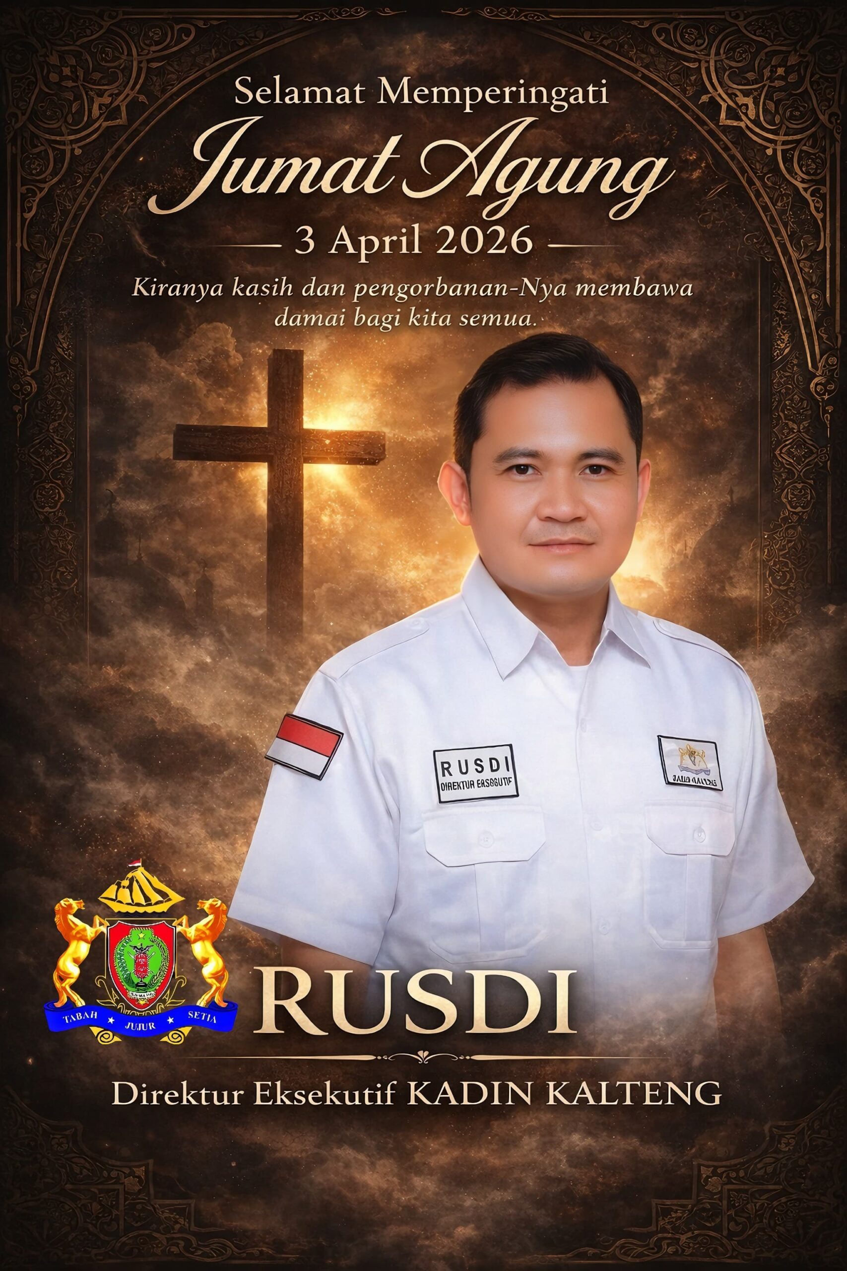 PALANGKA RAYA, Kalteng.co – Kamar Dagang dan Industri (Kadin) Kalimantan Tengah menyampaikan ucapan selamat memperingati Hari Jumat Agung yang jatuh pada Jumat, 3 April 2026. Momentum keagamaan ini diharapkan menjadi pengingat bagi seluruh masyarakat untuk memperkuat nilai-nilai keimanan, pengorbanan, serta kasih terhadap sesama.