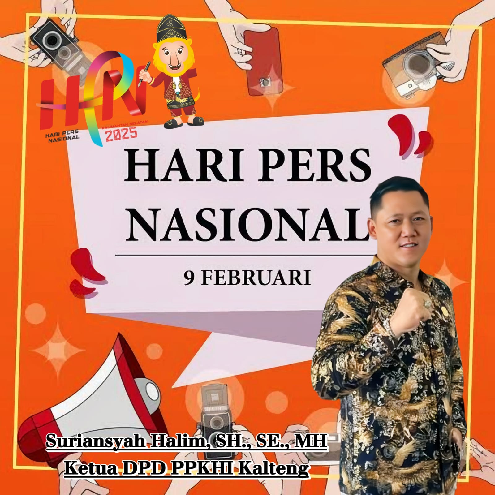 PALANGKA RAYA, Kalteng.co – Ketua DPD Perkumpulan Pengacara dan Konsultan Hukum Indonesia (PPKHI) Kalimantan Tengah, Suriansyah Halim, SH., SE., MH., mengucapkan selamat memperingati Hari Pers Nasional (HPN) 2025 serta Hari Ulang Tahun ke-79 Persatuan Wartawan Indonesia (PWI) yang jatuh pada Minggu, 9 Februari 2025.