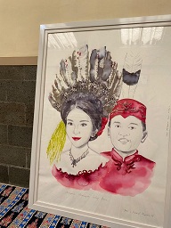 Fairid memberikan kado lukisan wajah Agustiar Sabran bersama Aisyah Thisia Bianty saat pemenuhan hukum adat yang dilakukan kemarin dengan menggunakan busana warna merah.