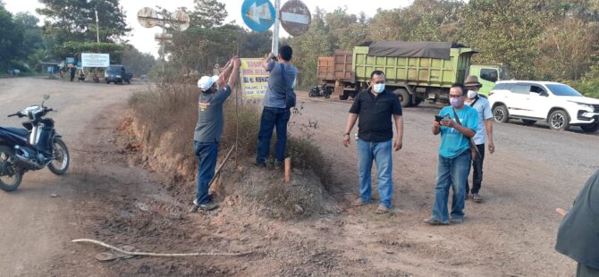 Pematokan dilakukan menggunakan pasak kayu kemudian dipasang banner  bertuliskan tanah milik Hj Misniati Cs dengan panjang 2.351 meter dengan lebar 20 meter.