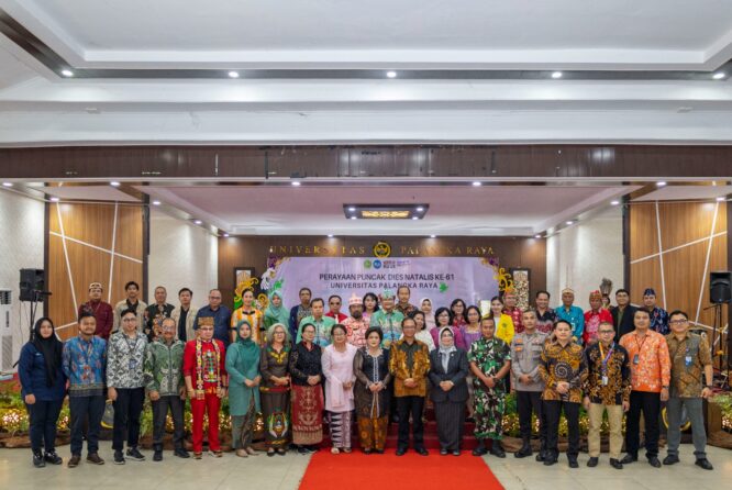 PALANGKA RAYA, Kalteng.co – Universitas Palangka Raya (UPR) menggelar puncak perayaan Dies Natalis ke 61 dengan mengambil tema Bersatu dalam Keberagaman, Berkarya dalam Kebersamaan, Menuju Unggul UPR Unggul dan Berkarakter, yang berlangsung di Aula Palangka, Selasa (19/11/2024).