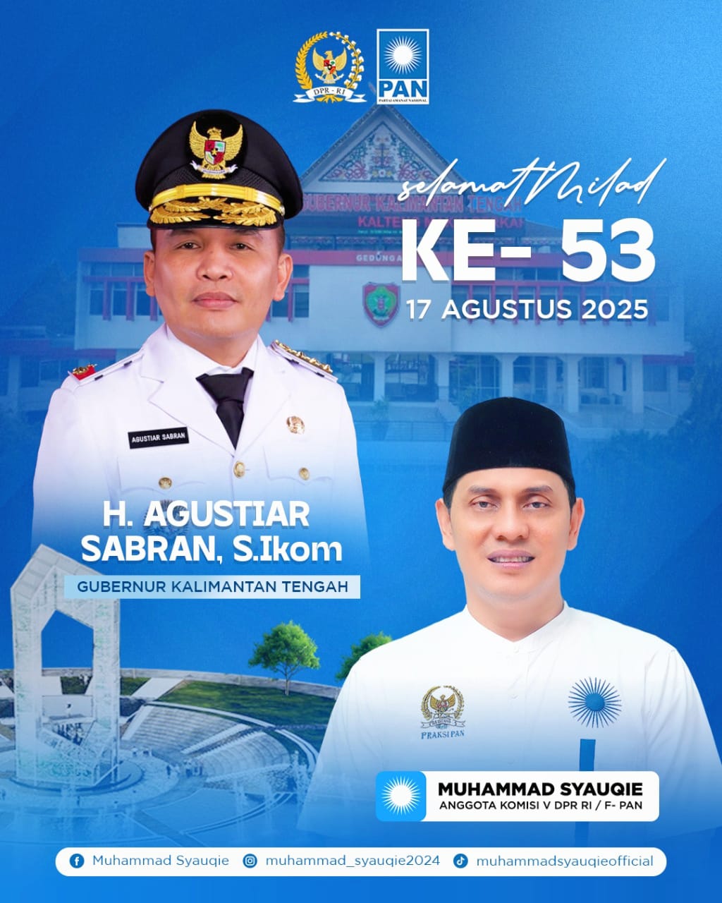 Di momen bersejarah ini, Syauqie juga menyampaikan doa dan harapan khusus bagi Provinsi Kalimantan Tengah yang terus berkembang pesat di bawah kepemimpinan Gubernur H. Agustiar Sabran.