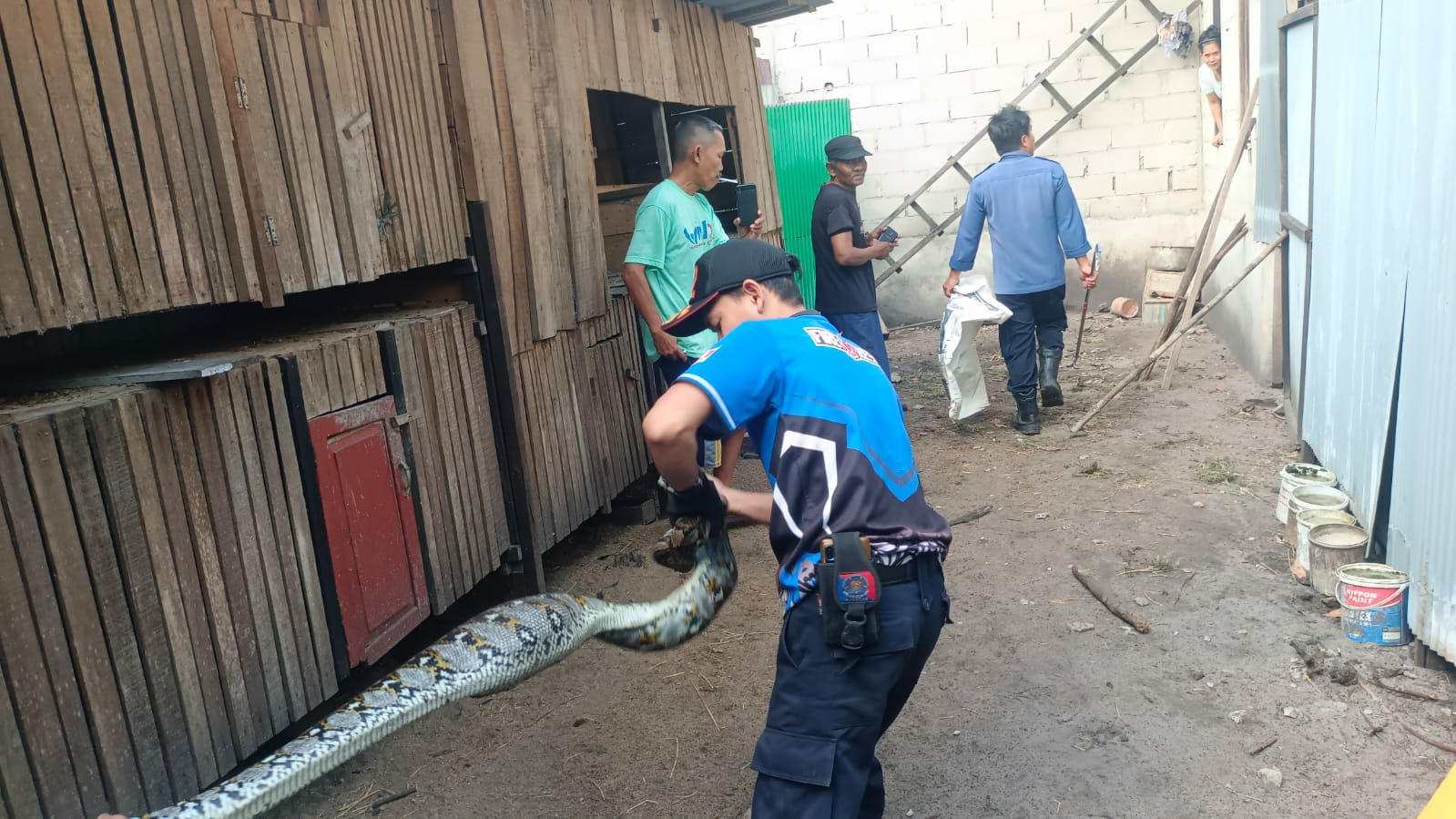 PALANGKA RAYA, Kalteng.co – Piton sepanjang tiga meter memangsa satu ekor ayam. Peristiwa ini terjadi di kandang ayam di Kompleks Perumahan Wahyu Anggono di Jalan Karanggang, Kelurahan Kelurahan Tanjung Pinang, Kecamatan Pahandut, Kota Palangka Raya.
