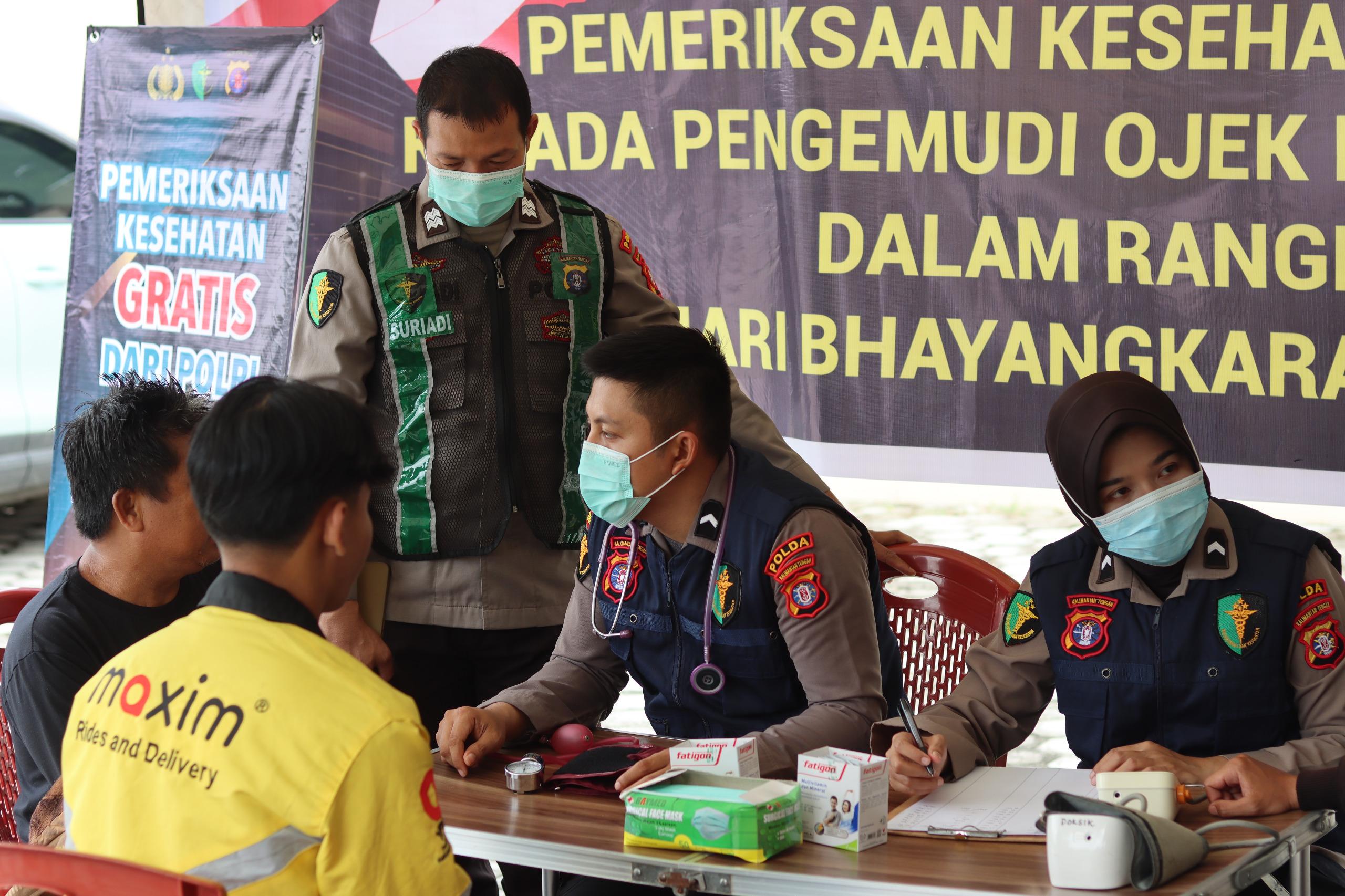 Kabiddokkes Polda Kalteng AKBP dr. Yusuf Kidingallo menyampaikan, bakti kesehatan ini bertujuan meningkatkan kesadaran dan kesehatan para Ojol yang sehari-hari beraktivitas di jalan.