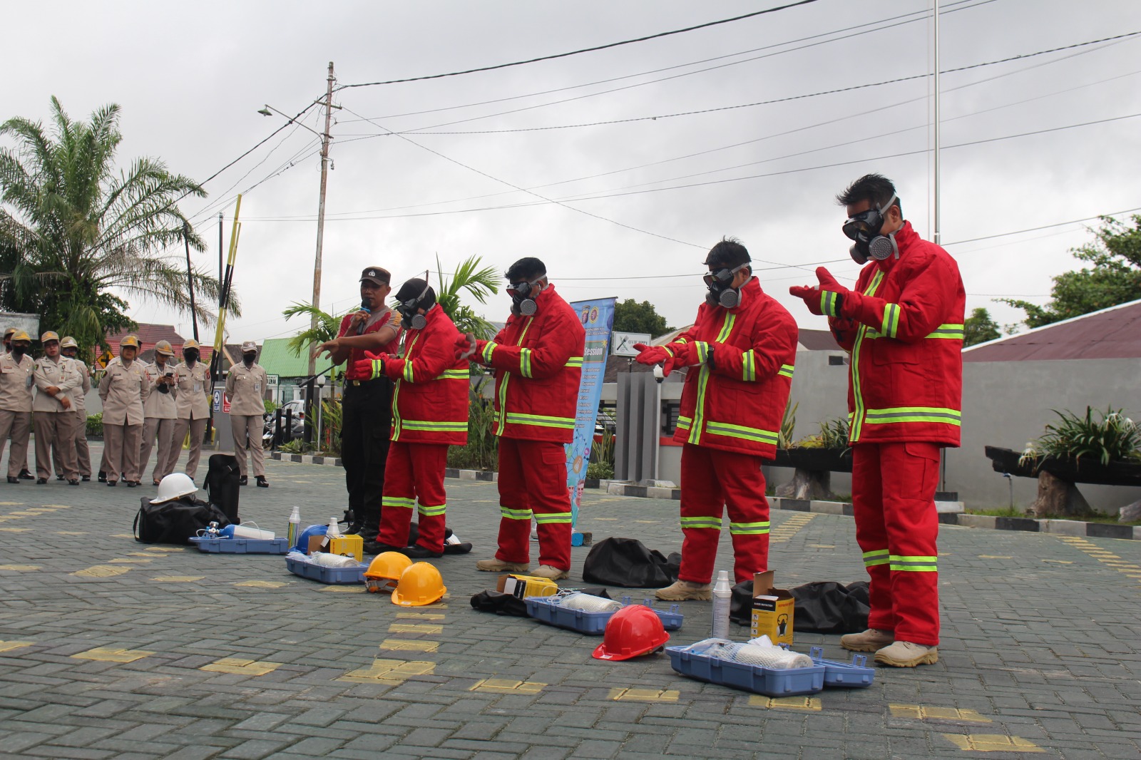 Dalam simulasi itu tim melakukan siaga bencana dalam mengevakuasi dan memberikan pertolongan pertama kepada korban akibat bencana karhutla.