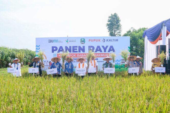 MAGETAN, Kalteng.co —Program PKT BISA berhasil meningkatkan produktivitas pertanian secara signifikan, dengan capaian total produksi mencapai 70 ton padi pada lahan seluas 10 hektare, 5 ton kacang pada lahan 1,1 hektare, dan 81 ton jagung pada lahan 8 hektare. Keberhasilan program PT Pupuk Kalimantan Timur (Pupuk Kaltim) ini ditandai dengan panen raya yang digelar di Dusun Babadan, Desa Kepuhrejo, Kecamatan Takeran, Kabupaten Magetan, Jawa Timur, Selasa (20/5/2025).