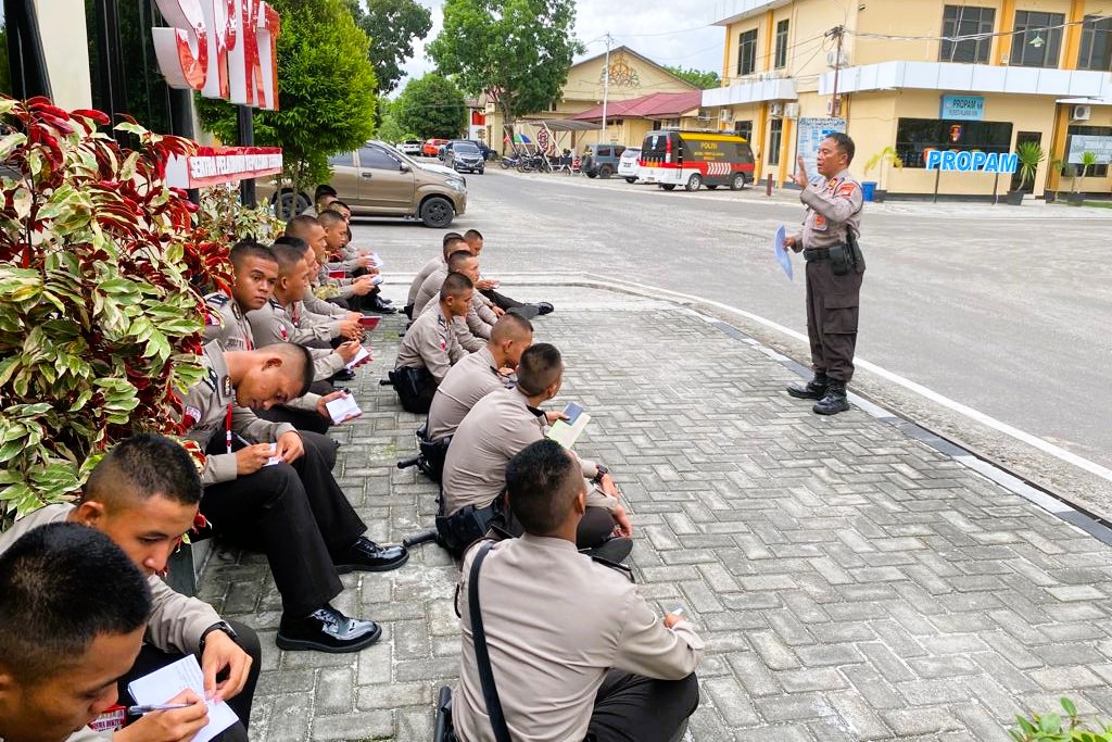 Para siswa mengikuti latihan yang diberikan AKP Gatoot dengan penuh semangat dan antusias, yang digelar di depan ruang Unit SPKT Polresta Palangka Raya mulai dari pukul 15.00 hingga 15.45 WIB.