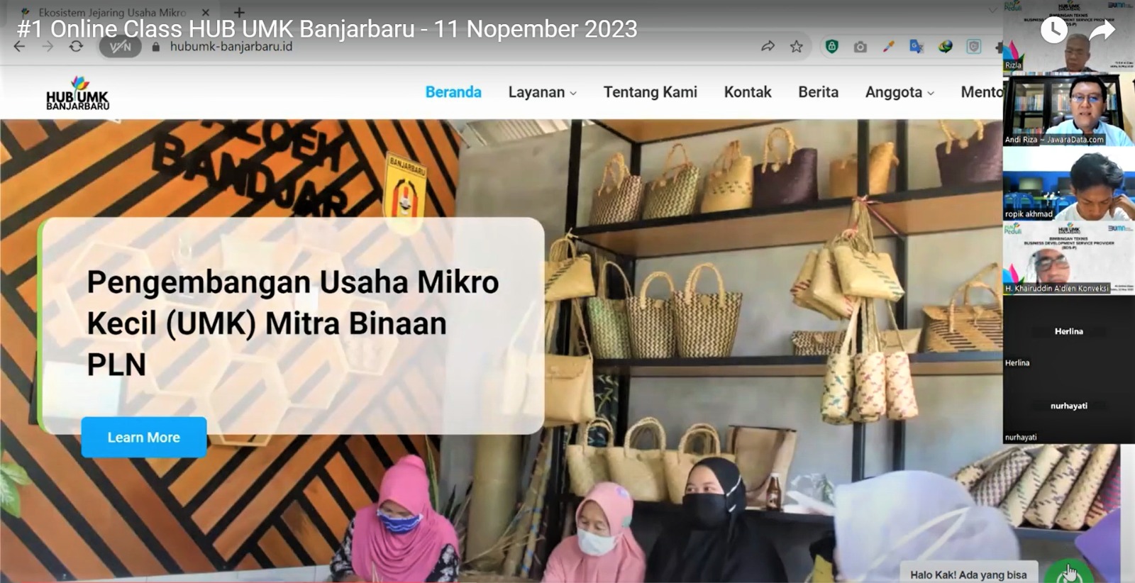 BANJAR BARU, Kalteng.co-Dalam rangka peningkatan kualitas pelaku bisnis UMK di Kalimantan Selatan dan Kalimantan Tengah, HUB UMK Banjarbaru yang dikelola oleh PT PLN (Persero) Unit Induk Distribusi Kalimantan Selatan dan Kalimantan Tengah gelar kelas online yang di ikuti oleh 29 peserta pada Sabtu, 11 November 2023.