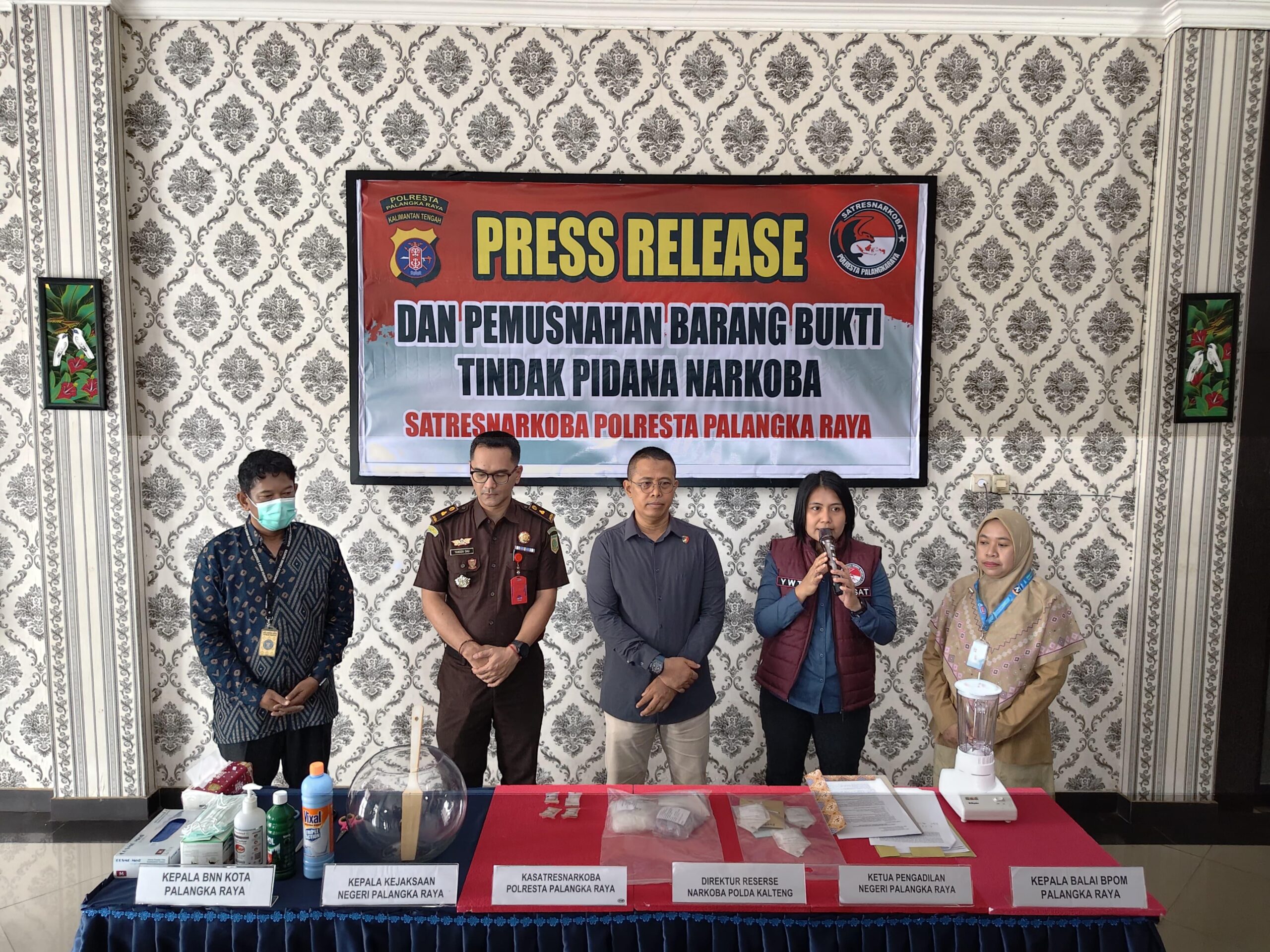 Berdasarkan penetapan status barang bukti dari Kejaksaan Negeri Palangka Raya, narkotika jenis sabu seberat 416,24 gram, ekstasi 244,16 gram, serta obat putih tanpa merek seberat 40,85 gram akan dimusnahkan oleh penyidik Satresnarkoba.