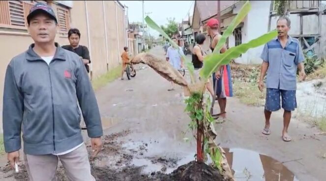 Warga Perintis Permai Tanam Pohon Pisang di Tengah Jalan, Protes Jalan Rusak Tak Kunjung Diperbaiki