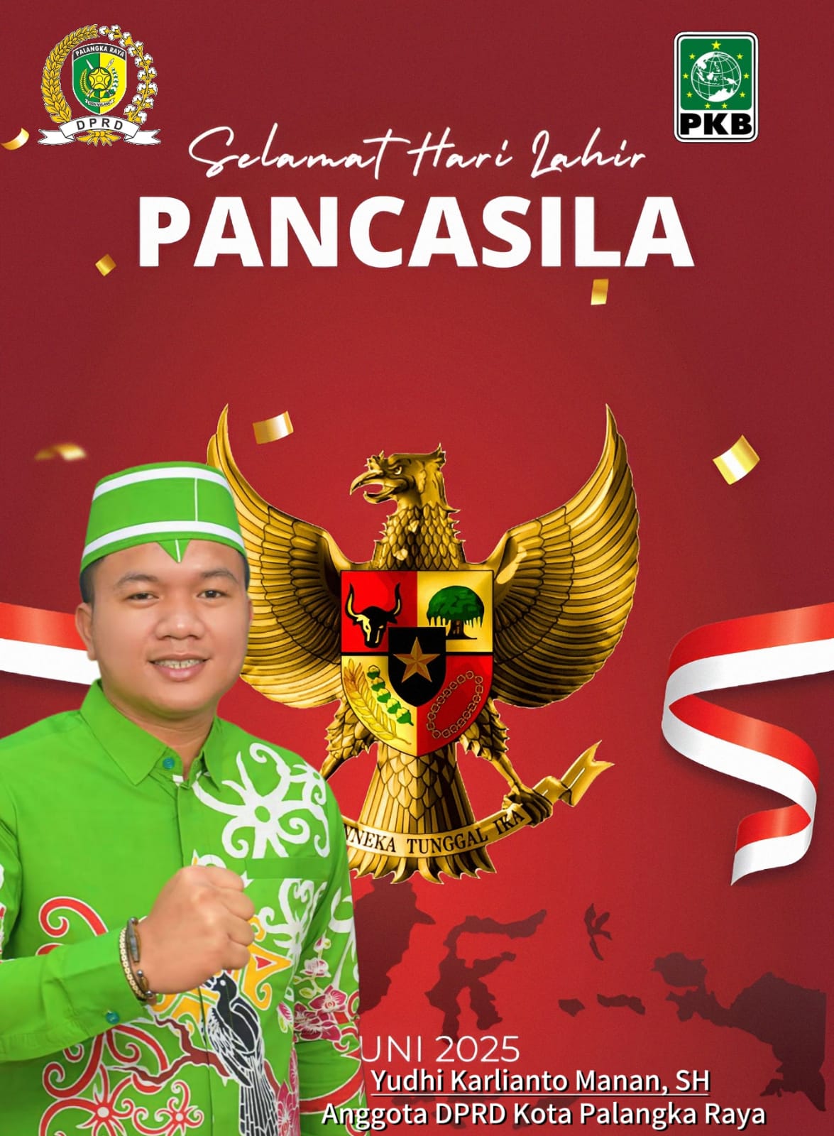PALANGKA RAYA, Kalteng.co — Dalam momentum peringatan Hari Lahir Pancasila, Minggu (01/06/2025), Anggota Komisi II DPRD Kota Palangka Raya, Yudhi Karlianto Manan, SH., mengajak seluruh masyarakat untuk menjadikan Pancasila sebagai semangat utama dalam membangun daerah yang maju, inklusif, dan berkeadilan.