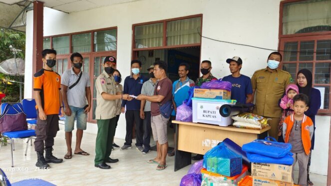 Bantuan Bupati Kapuas Ir. Ben Brahim S Bahat, melalui Badan Penanggulangan Bencana Daerah (BPBD) Kapuas disalurkan, Selasa (19/4/2022) kepada korban terdampak kebakaran Rumah di Desa Pujon RT.06 , Kecamatan Kapuas Tengah, Kabupaten Kapuas.