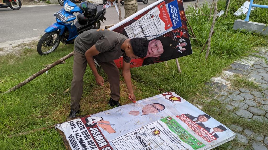 “Pembersihan APK kali ini dilakukan oleh petugas Satpol PP di Jalan Yos Sudarso, Jalan Bukit Keminting hingga ke Kelurahan Bukit Batu,” katanya, Senin (12/2/2024).