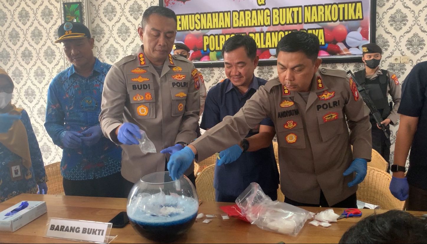 PALANGKA RAYA, Kalteng.co – Satu kilogram lebih sabu-Sabu dimusnahkan. Kegiatan ini dilakukan oleh Polresta Palangka Raya hasil pengungkapannya dalam satu bulan terakhir ini, Selasa (29/11/2022) pagi.