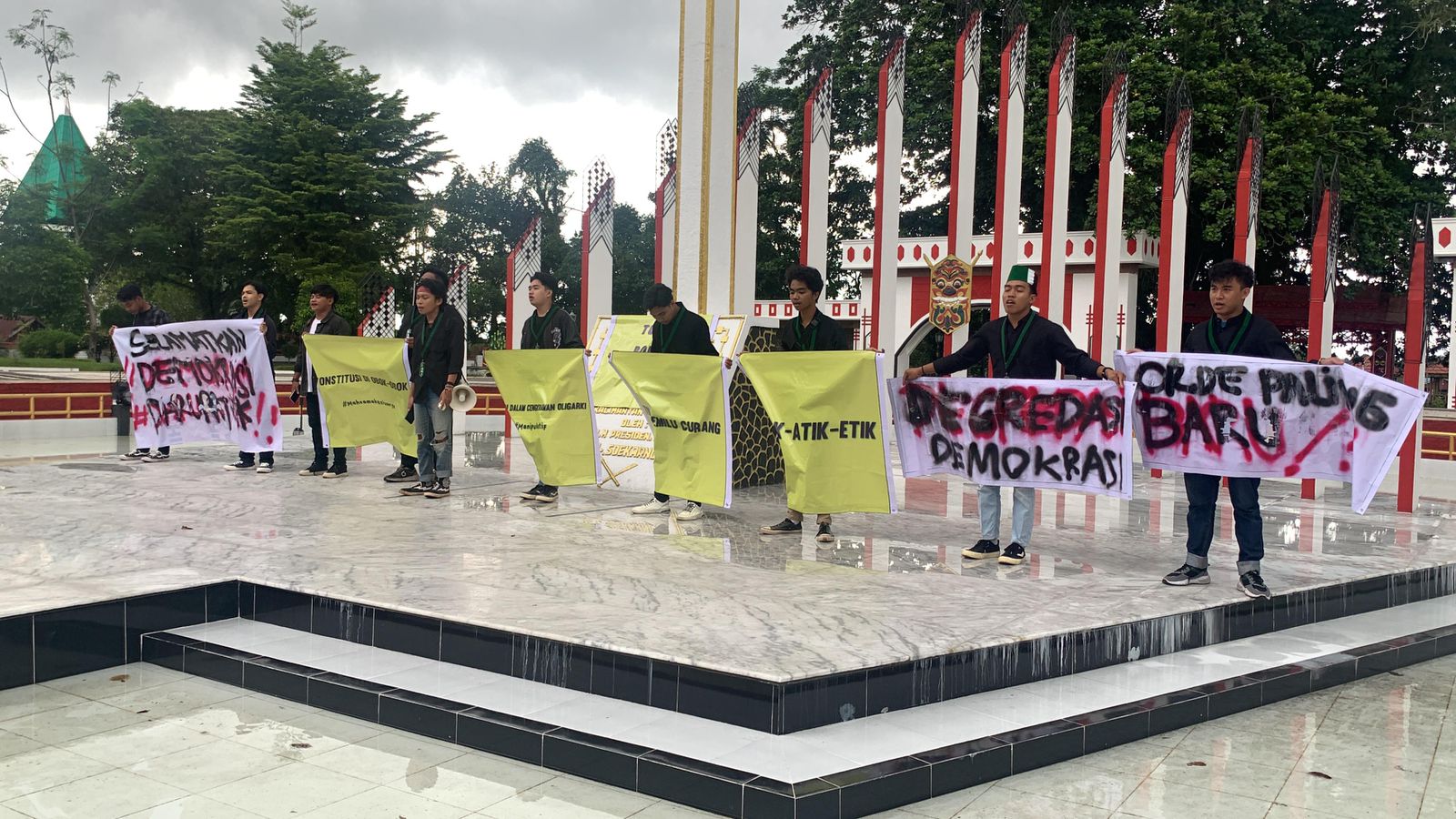 Aksi damai tersebut berlangsung di halaman Tugu Soekarno yang terletak di Jalan Ahmad Yani, Kelurahan Langkai, Kecamatan Pahandut, Kota Palangka Raya, Jumat (9/2/2024).