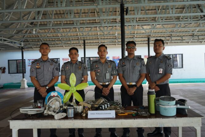 Hasilnya, sejumlah barang terlarang berhasil ditemukan, diantaranya beberapa handphone kecil, colokan listrik, dan sejumlah benda dilarang lainnya yang dapat menganggu keamanan dan ketertiban di dalam kamar hunian.