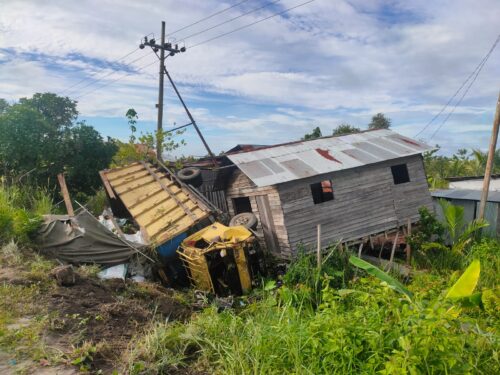 PALANGKA RAYA, Kalteng.co – Truk pupuk sambar rumah. Tidak ada korban jiwa dalam insiden itu. Kecelakaan lalu lintas ini terjadi, Rabu (12/10/2022) sekitar pukul 06.00 WIB.