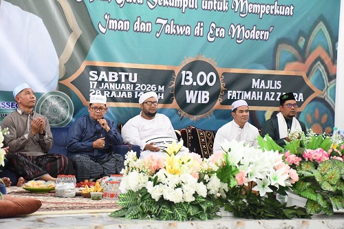 PULANG PISAU,Kalteng.co – Peringatan Isra Mikraj Nabi Muhammad SAW 1447 Hijriah yang dirangkai dengan Haul KH Muhammad Zaini bin Abdul Ghani (Guru Sekumpul) ke-21 dimanfaatkan sebagai momentum memperkuat keimanan dan akhlak umat Islam di Kabupaten Pulang Pisau. Kegiatan keagamaan yang digelar Panitia Hari Besar Islam (PHBI) Gabungan Pengajian Kabupaten Pulang Pisau tersebut berlangsung di Majelis Ta’lim Fatimah Az-Zahrah, Jalan Kasturi, Kecamatan Kahayan Hilir, Sabtu (17/1/2026), dan diikuti ratusan jamaah dari berbagai majelis taklim.