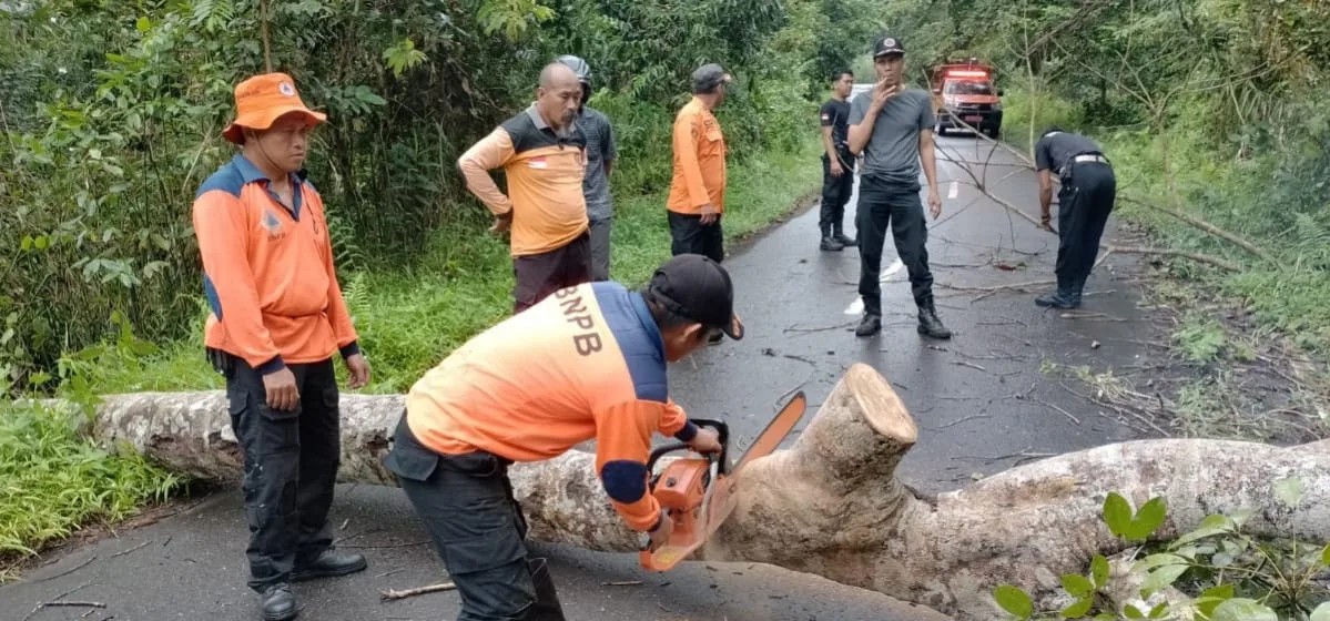 Proses pemotongan pohon dilakukan dengan cepat dan efektif untuk memastikan keamanan pengguna jalan.