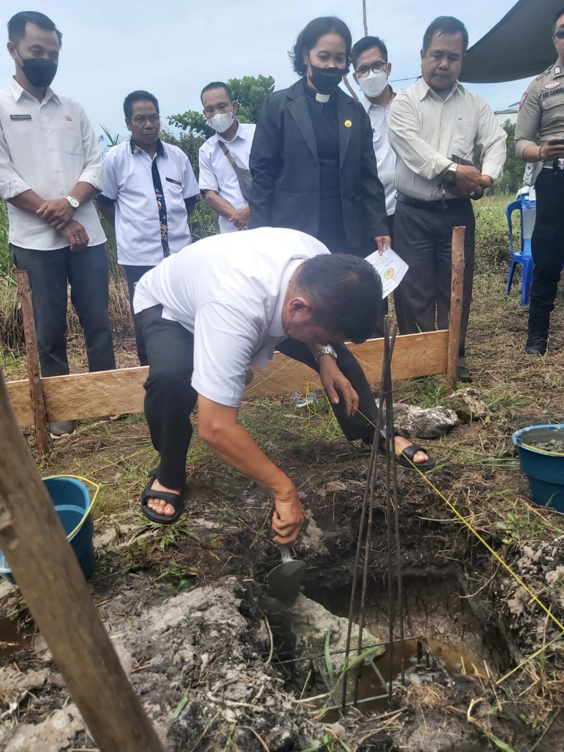 TAMIANG LAYANG,kalteng.co- Bupati Barito Timur Ampera AY Mebas, Rabu (23/11/2022), meletakan batu pertama pembangunan Gereja Siong Kecamatan Paju Epat. Kegiatan ini dihadiri oleh Kapolres Barito Timur, Ketua Resort GKE Tamiang Layang, Para Pendeta dan Vikaris, Camat Paju Epat, Kepala Desa Siong, Damang Paju Epat dan Tokoh Masyarakat dan Tokoh Agama di wilayah Kecamatan Paju Epat.