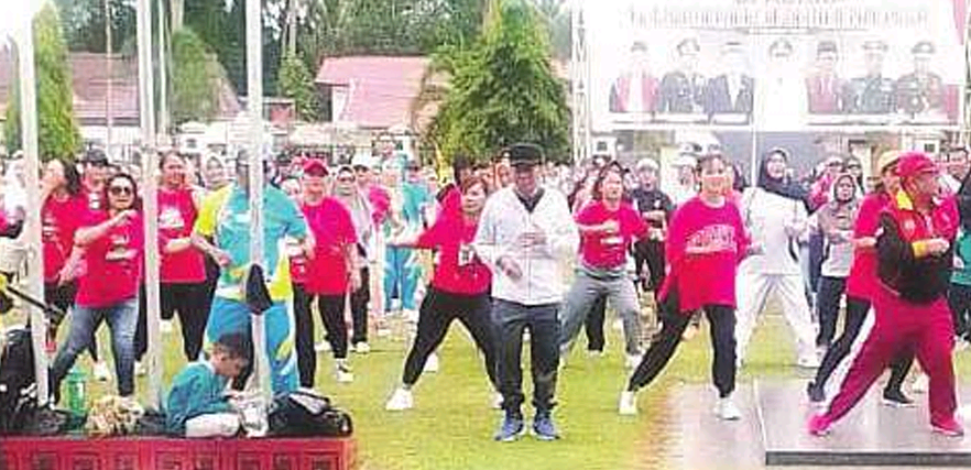 TAMIANG LAYANG,kalteng.co– Dalam rangka mewujudkan sumber daya manusia yang sehat jasmani dan berkualitas, Pemerintah Kabupaten Barito Timur (Bartim), PT Adaro, dan mitra kerjanya menggelar senam bersama di halaman Kantor Bupati Barito Timur, Jumat (11/10).