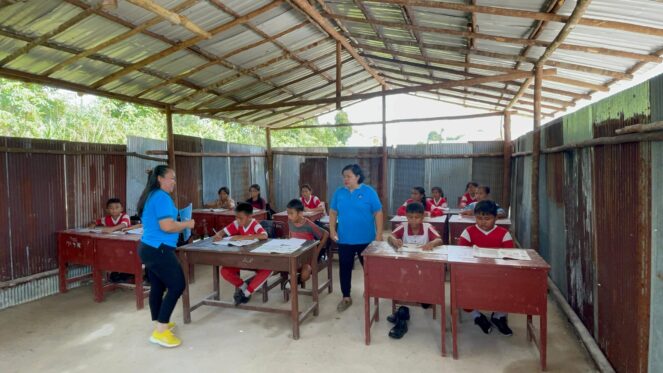 “Anak-anak jadi kepanasan di ruang berdinding seng. Bangunan seperti ini jelas tidak layak, apalagi mereka belajar sampai hampir pukul tiga sore,” ujarnya.