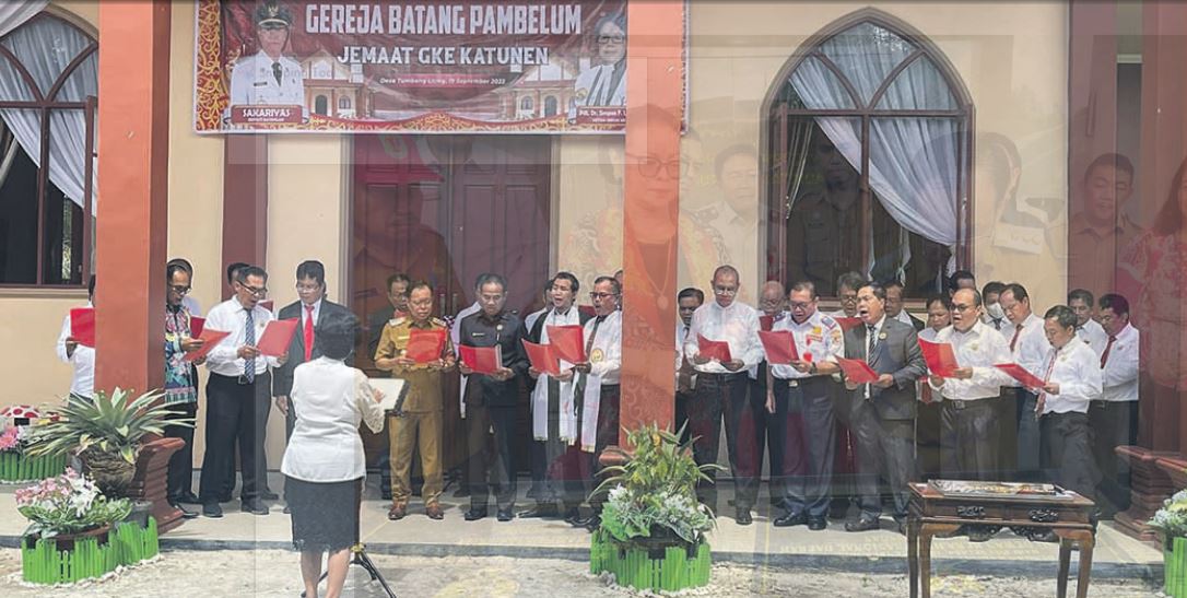 KASONGAN,kalteng.co-Pembangunan rumah ibadah Gereja Batang Pambelum milik warga jemaat GKE Katunen mendapat apresiasi dari Pemerintah Kabupaten (Pemkab) Katingan. Pasalnya setelah melewati proses, akhirnya bangunan tersebut bisa selesai dan telah diresmikan secara resmi oleh Bupati Katingan Sakariyas. Peresmian ini disaksikan langsung oleh Sekda Kabupaten Katingan Pransang, pejabat daerah dan jemaat GKE Katunen, Selasa (19/9/2023).