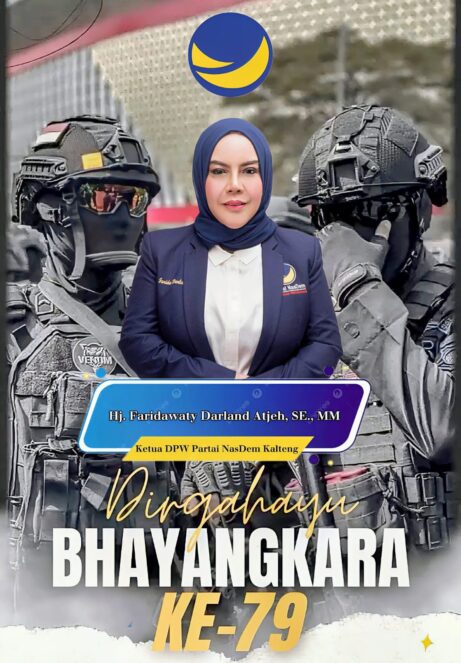 PALANGKA RAYA, Kalteng.co – Ketua DPW Partai NasDem Provinsi Kalimantan Tengah, Hj. Faridawaty Darland Atjeh, SE., MM., menyampaikan penghormatan dan apresiasi yang mendalam kepada seluruh jajaran Kepolisian Republik Indonesia (Polri), khususnya yang bertugas di wilayah Kalimantan Tengah, dalam rangka peringatan Hari Bhayangkara ke-79 yang jatuh pada Selasa, 1 Juli 2025.