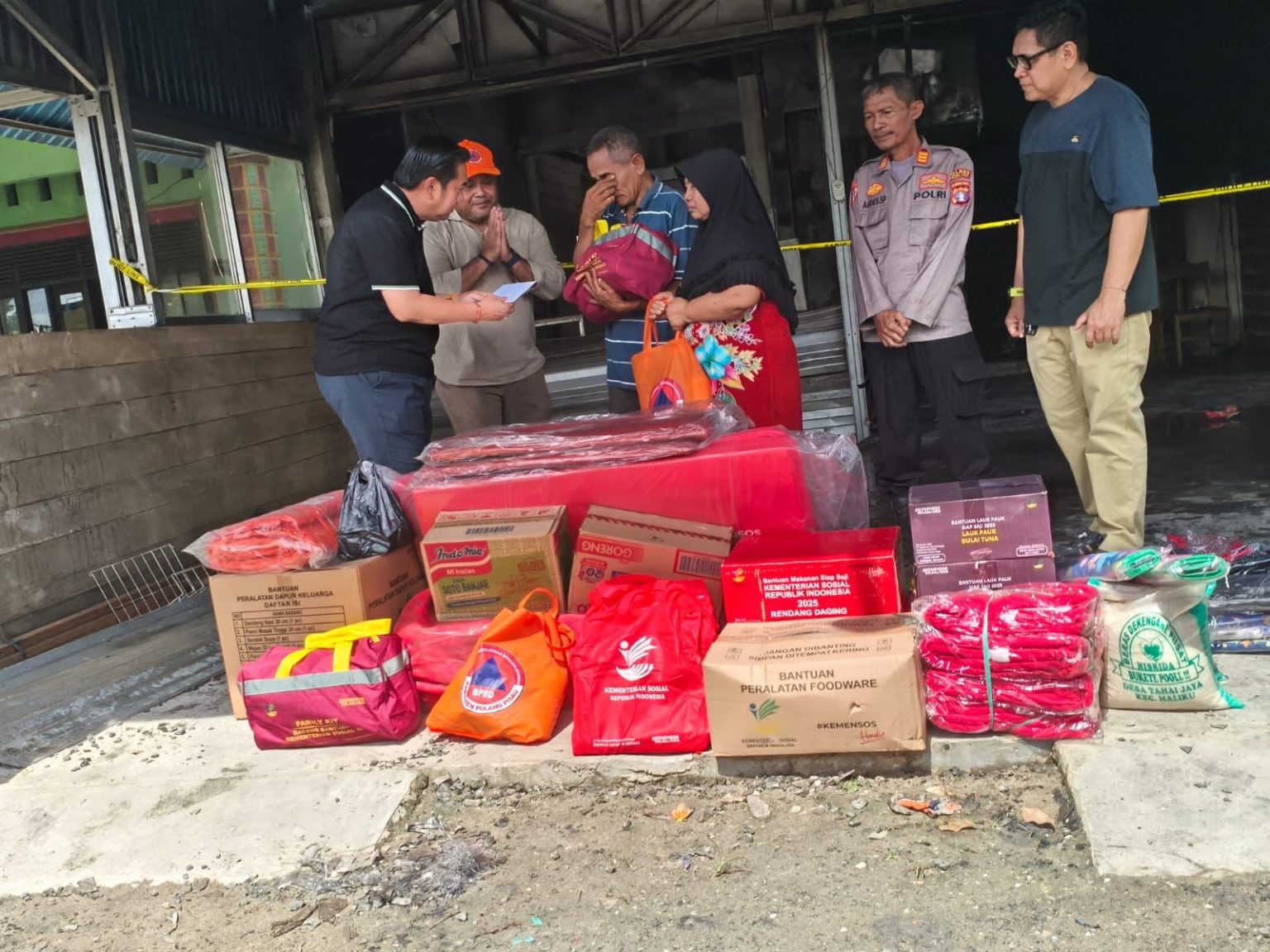 PULANG PISAU,kalteng.co – Pemerintah Kabupaten Pulang Pisau menyalurkan bantuan logistik kepada korban kebakaran Rumah Makan Ponorogo di Jalan Trans Kalimantan, Desa Mentaren I, Kecamatan Kahayan Hilir, Sabtu (10/1). Kebakaran tersebut terjadi Jumat (9/1) sekitar pukul 23.44 dan diduga akibat korsleting arus pendek listrik. Bantuan diserahkan Wakil Bupati (Wabup) Pulang Pisau H Ahmad Jayadikarta didampingi Kepala Pelaksana BPBD Pulang Pisau Herman Wibowo serta Kepala Diskominfostandi Hendri Aroyyo.
