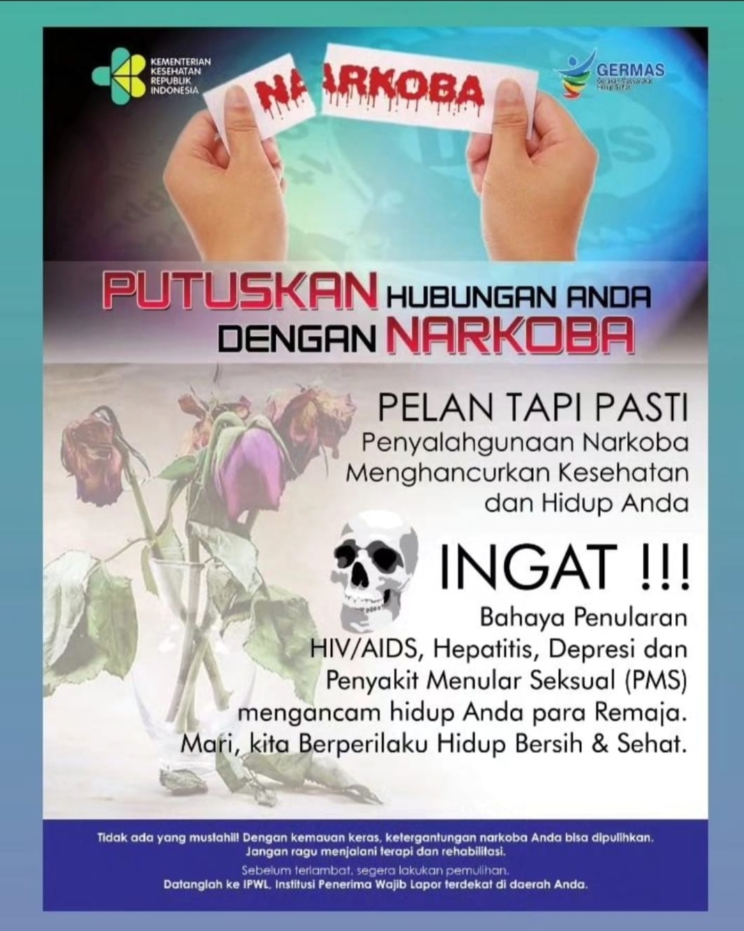 “Karena itu, kami mengimbau masyarakat  tidak sama sekali mencoba ataupun memakai narkoba. Jika ada yang masih menggunakan tolong berhenti. Ingat sayangi diri sendiri,” tutupnya.(ria)