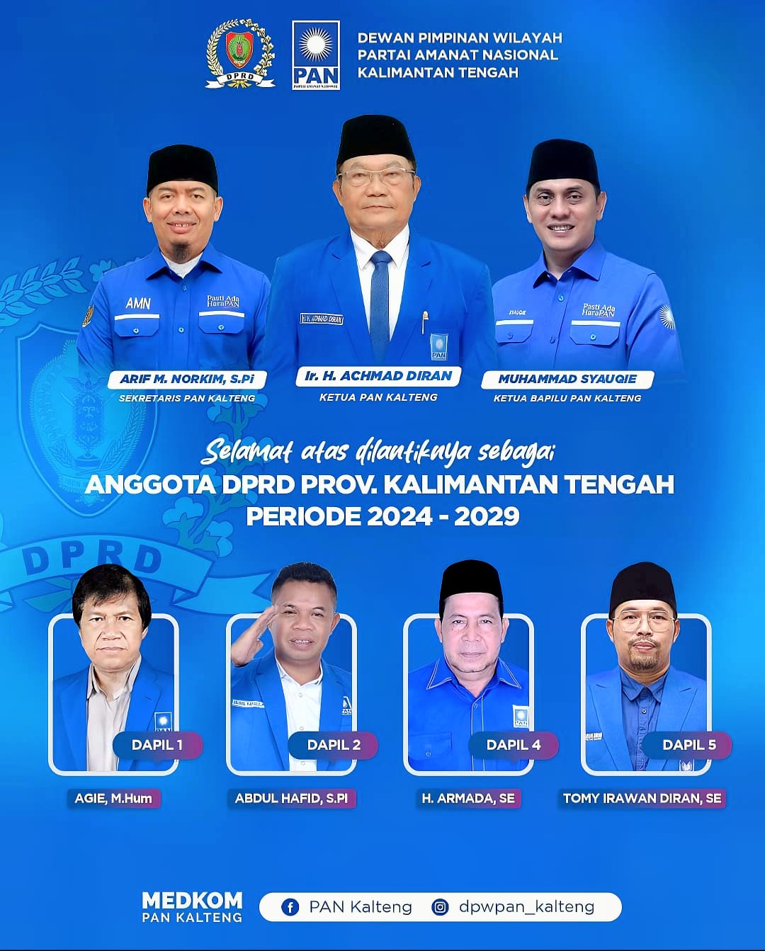 Ketua BAPILU DPW PAN Kalteng  Beri Ucapan Selamat kepada Anggota DPRD Kalteng yang Baru Dilantik
