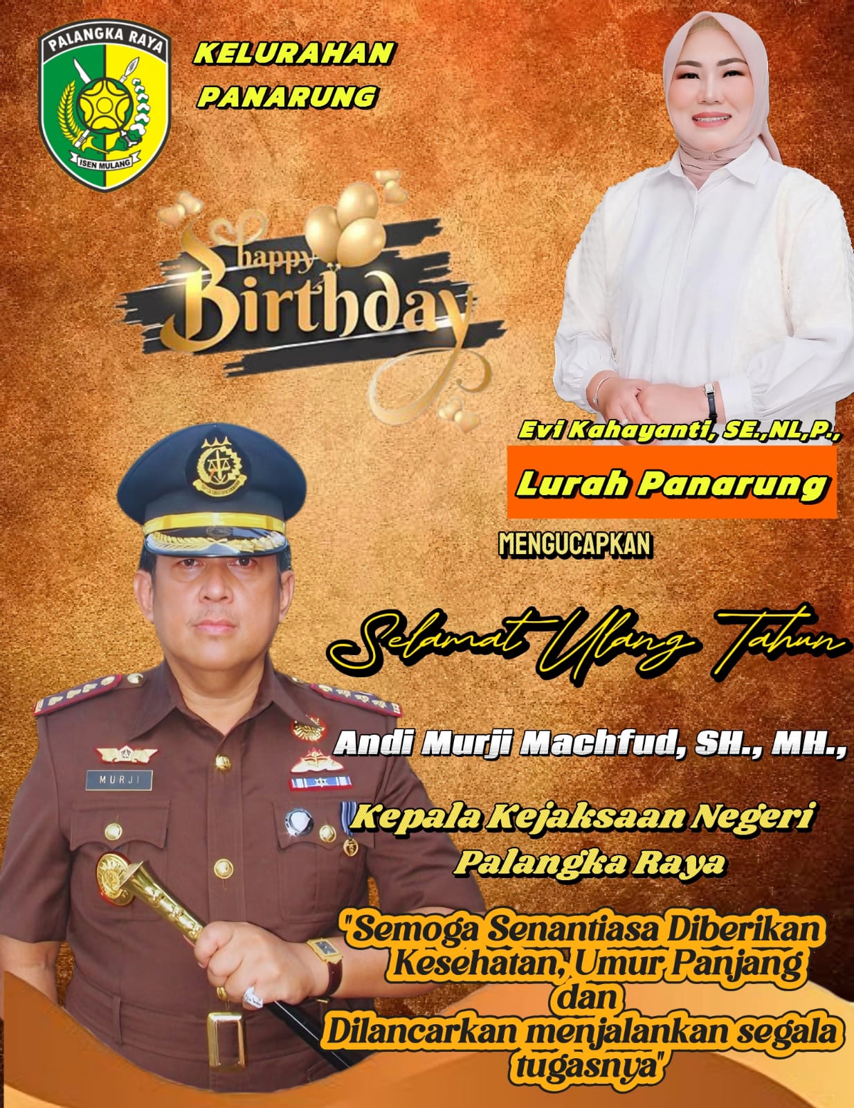 “Selamat ulang tahun kepada Bapak Kepala Kejaksaan Negeri Palangka Raya, Andi Murji Machfud. Semoga di usia yang baru ini, bapak selalu diberi kekuatan dan kesehatan untuk terus mengabdi kepada masyarakat dan menegakkan hukum dengan adil,” ucap Evi.