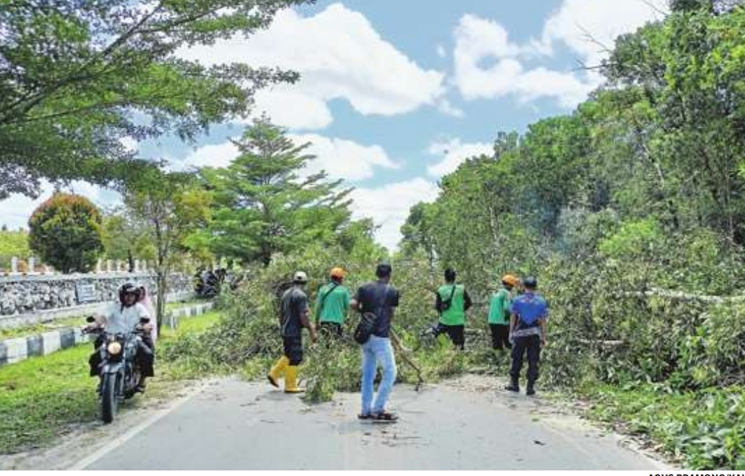 “Dari laporan warga yang kami dapati, bersama dengan rekan- rekan langsung menindaklanjuti hal itu, dengan melakukan pembersihan sisa pohon akasia yang tumbang yang sudah memakan korban jiwa, sementara pohon- pohon disekitarnya kita tebang juga karena ada yang sudah miring dan rawan tumbang,” ungkap Sucipto.