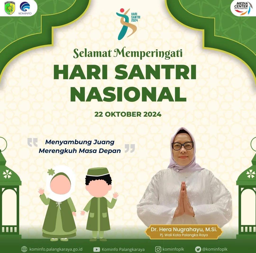 PALANGKA RAYA, Kalteng.co – Penjabat (Pj) Wali Kota Palangka Raya, Hera Nugrahayu, turut memberikan ucapan selamat memperingati Hari Santri Nasional (HSN) 2024 yang jatuh pada hari ini, Selasa (22/10/2024). Dalam pernyataannya, Hera menekankan pentingnya kontribusi santri dalam pembangunan di berbagai bidang, termasuk di lingkungan perkotaan.
