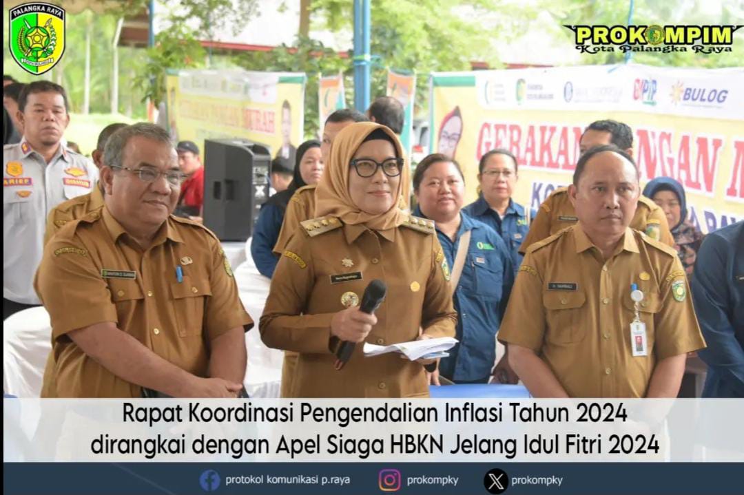 PALANGKA RAYA, Kalteng.co – Pj. Wali Kota Palangka Raya, Hera Nugrahayu, memimpin Rapat Koordinasi Pengendalian Inflasi Tahun 2024 yang dirangkai dengan Apel Siaga Hari Besar Keagamaan Nasional (HBKN) jelang Idul Fitri 2024 Melalui Gerakan Pangan Murah, yang berlangsung di Halaman Kantor Kelurahan Kereng Bangkirai, Senin (1/4/2024).