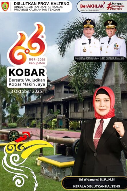 PALANGKA RAYA, Kalteng.co – Peringatan Hari Jadi ke-66 Kabupaten Kotawaringin Barat (Kobar) pada Jumat (3/10/2025) mendapat perhatian dan doa dari berbagai pihak, termasuk dari Kepala Dinas Kelautan dan Perikanan (Dislutkan) Provinsi Kalimantan Tengah, Sri Widanarni, S.I.P., M.Si.